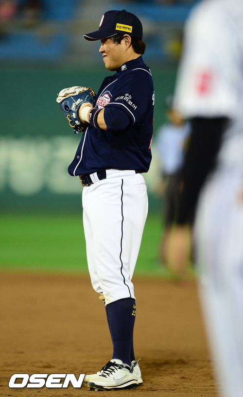 1루수 변신 양의지,'글러브에 힘 잔뜩 들어가네'