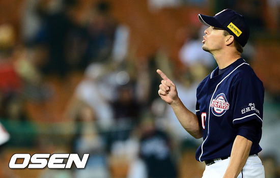 두산 프록터가 무실점으로 세이브를 올린후 환호하고 있다/ soul1014@osen.co.kr