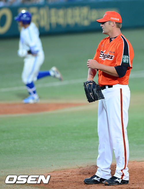 첫 아웃 카운트를 잡은 션 헨은 박석민과의 대결에서 1구째 한 가운데 직구를 던져 가운데 펜스를 넘기는 125m짜리 3점포를 얻어맞고 고개를 떨궜다. 한화 벤치는 션 헨 대신 정민혁을 마운드에 올렸다. 한화는 2회에만 8점을 허용하는 바람에 1-12로 크게 졌다.