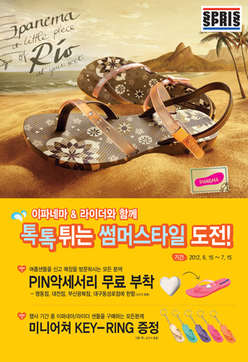 스포츠 캐주얼 전문샵 스프리스가 썸머 슈즈 브랜드인 이파네마(IPANEMA)와 라이더(RIDER) 출시 기념 2가지 이벤트를 펼친다.