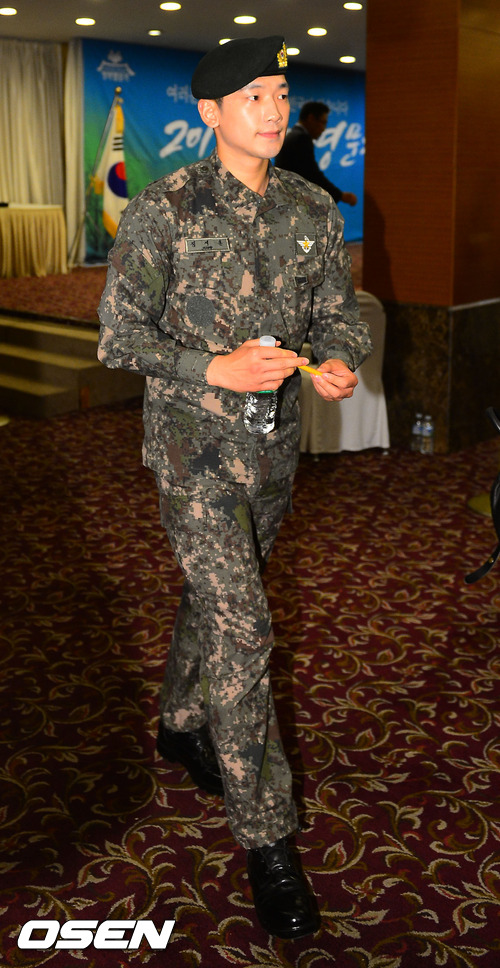 15일 오전 서울 종로구 세종문화회관 세종홀에서 열린 ‘2012년도 병역명문가 시상식’에서 사회자로 나선 병무홍보대사인 가수 비(국방홍보지원단 정지훈 일병)가 행사를 마치고 퇴장하고 있다.