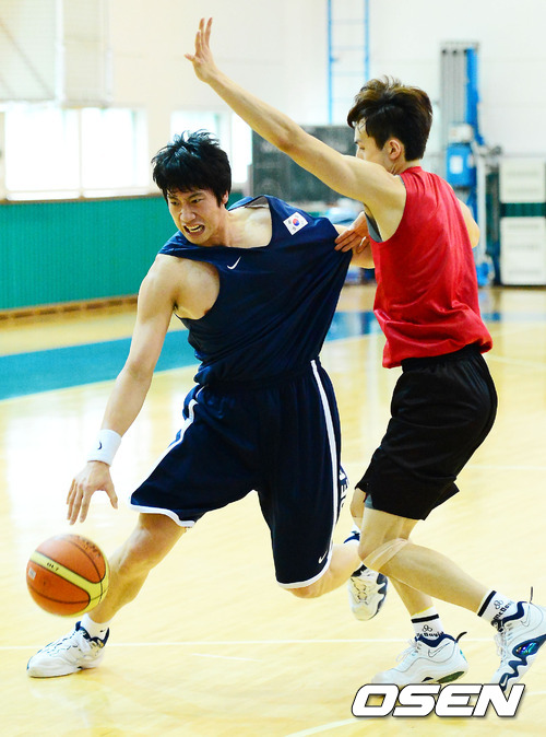 15일 오후 서울 노원구 공릉동 태릉선수촌에서 열린 남자 농구대표팀과 인천 전자랜드와의 연습경기에서 농구대표팀 양희종이 돌파를 시도하고 있다.