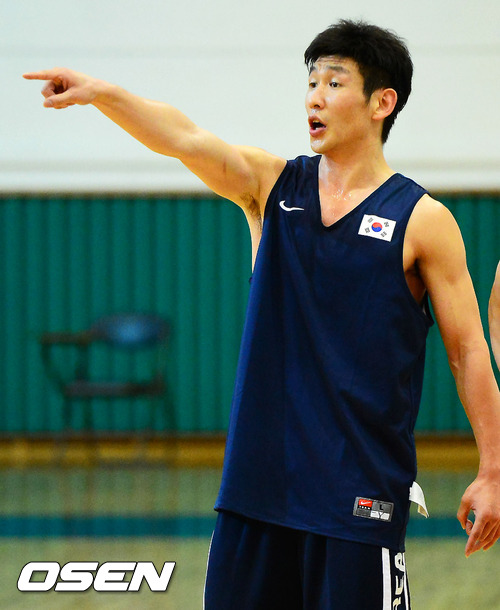 15일 오후 서울 노원구 공릉동 태릉선수촌에서 열린 남자 농구대표팀과 인천 전자랜드와의 연습경기에서 농구대표팀 주장 양동근이 선수들에게 지시를 내리고 있다.