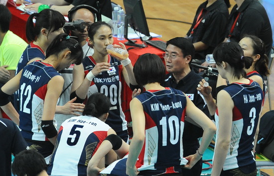 작전타임 중인 한국선수들 / FIVB 홈페이지.