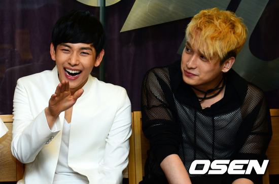 15일 오후 부산 해운대 부산 한 카페에서 진행된 제국의아이들 컴백 기념 '화이팅 프로젝트'에서 기자회견에서 임시완이 웃고 있다.