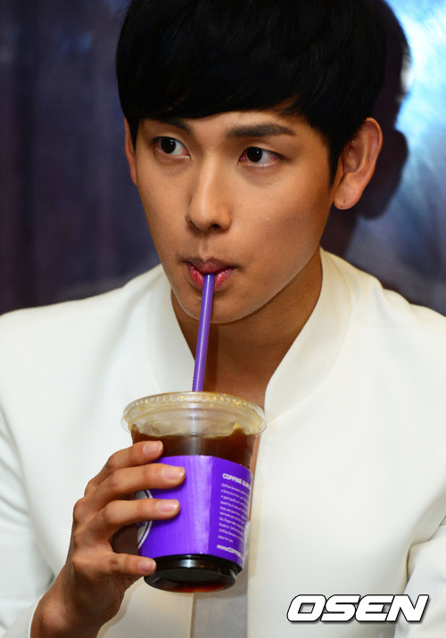 15일 오후 부산 해운대 부산 한 카페에서 진행된 제국의아이들 컴백 기념 '화이팅 프로젝트' 기자회견에서 임시완이 음료를 마시고 있다.