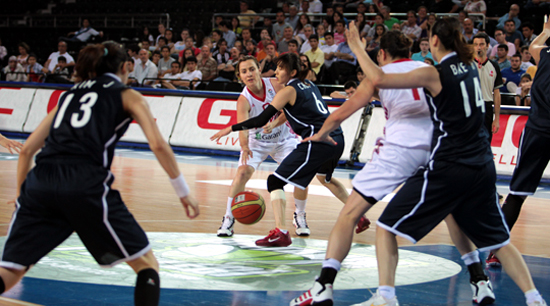 한국은 전반까지 27-29로 2점 차로 뒤지며 터키와 대등한 경기를 펼쳤다. 3쿼터에 신정자와 변연하를 통해 역전의 기회를 엿본 한국은 골밑에서의 열세를 극복하지 못하고 40-53으로 크게 뒤진 채 3쿼터를 마쳤다. 결국 4쿼터에도 반전의 기회를 마련하지 못한 한국은 패배를 면하지 못했다.