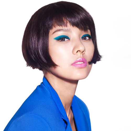 푸른색 아이라인과 핑크빛 립 컬러가 극명한 대비를 이뤄 여름 피서지에 어울리는 핫한 스타일을 엿볼 수 있다.
