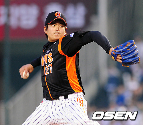 중앙대 시절 최고 투수로 활약, 광저우 아시안게임 대표팀에 유일한 아마추어 선수로 선발되어 금메달 기쁨과 함께 2년 간의 병역 특례 혜택을 얻은 김명성은 지난 17일 포수 용덕한(31, 롯데)과의 맞트레이드를 통해 두산에 새 둥지를 틀었다. 김명성은 2011 신인 드래프트서 롯데에 1라운드 5순위로 선발된 바 있다.