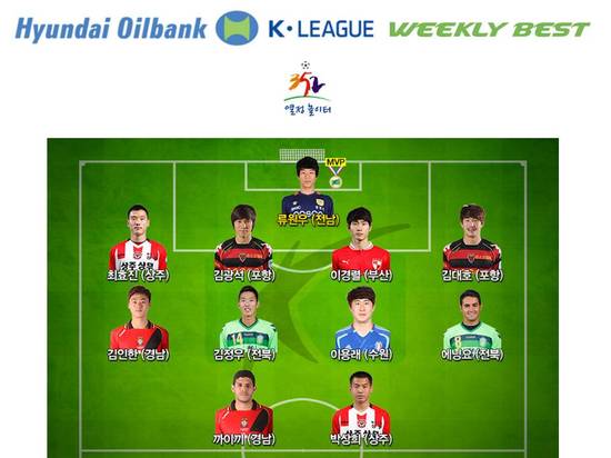 한국프로축구연맹(이하 연맹)은 지난 17일 일제히 열린 '현대오일뱅크 K리그 2012' 16라운드 베스트 11과 라운드 MVP를 선정, 19일 오전 발표했다.