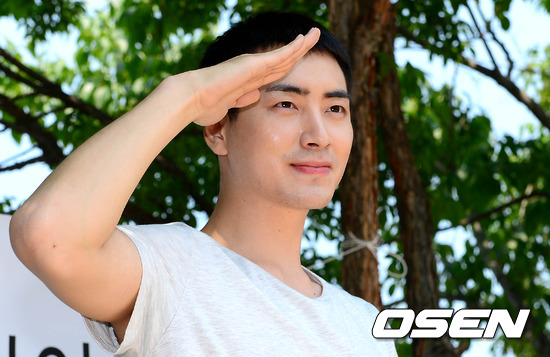 19일 오후 의정부 306보충대를 통해 현엽 입대하는 배우 이준혁이 훈련장 인근 공터에서 취재진들을 향해 포즈를 취하고 있다.