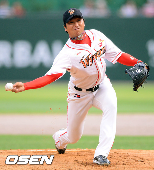 19일 오후 인천 문학구장에서 열린 2012 팔도 프로야구 SK 와이번스와 롯데 자이언츠의 경기 1회초 SK 선발 신승현이 역투하고 있다.