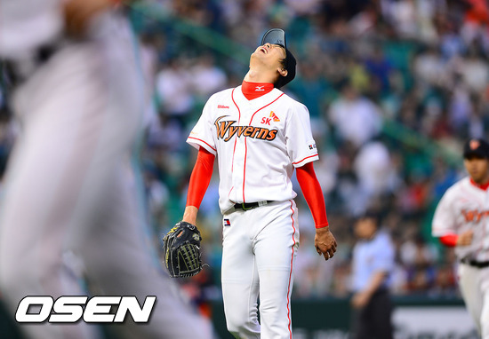20일 오후 인천 문학구장에서 열린 2012 팔도 프로야구 SK 와이번스와 롯데 자이언츠의 경기 4회초 공수교대때 1실점 허용한 SK 선발투수 김광현이 아쉬운 표정으로 더그아웃으로 들어가고 있다.