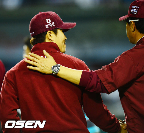 경기를 마치고 김병현이 넥센 김시진 감독과 포옹과 악수를 나누고 있다. / rumi@osen.co.kr