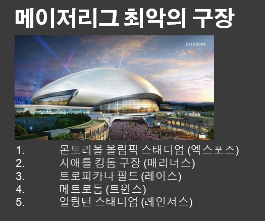 돔 구장을 사용하던 미네소타 트윈스는 타겟필드로 이전했고 현재 트로피카나 필드를 사용 중인 탬파베이 레이스는 어떻게 해서든 그 곳을 떠나려고 노력 중이다.