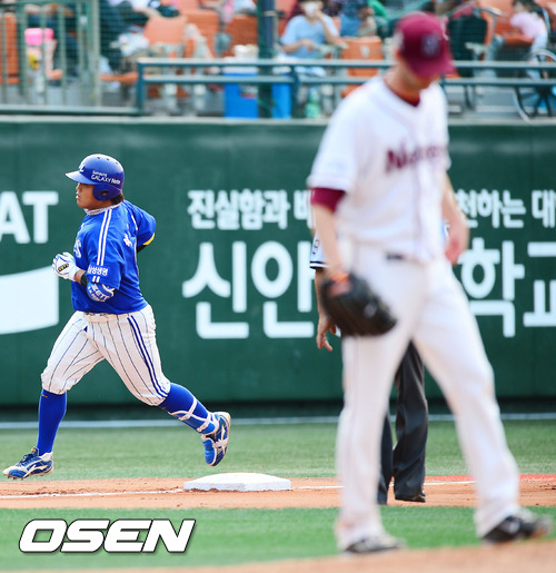 23일 오후 서울 목동구장에서 열린 '2012 팔도 프로야구' 넥센 히어로즈와 삼성 라이온즈의 경기에서 4회초 무사 주자 1루 삼성 박석민이 중월 역전 투런 홈런을 날린 후 그라운드를 돌고 있다.