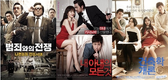 올 상반기 400만 고지를 넘은 한국영화는 '범죄와의 전쟁:나쁜놈들 전성시대'(이하 '범죄와의 전쟁'), '내 아내의 모든 것'과 '건축학개론' 등 세 편. '범죄와의 전쟁'은 468만여명(영진위 공식집계), '내 아내의 모든 것'은 417만여명, '건축학개론'은 410만여명의 관객을 모았다.