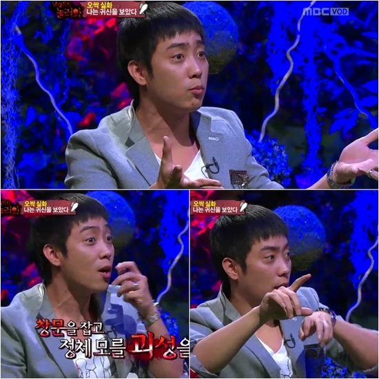 가수 은지원이 귀신 목격담을 실감나게 재연했다.