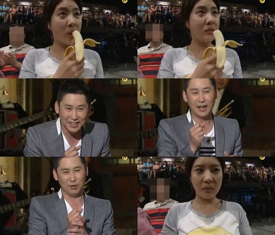 이날 방송에서 강유미는 방청객 석에 앉아 바나나를 빨아 먹는 모습으로 곽현화의 '바나나 셀카' 모습을 패러디 했고, 이에 신동엽은 "바나나는 빨아 먹는 과일이 아니다. 반드시 깨물어 먹어야 한다"고 지적해 보는 이들을 폭소케 했다.
