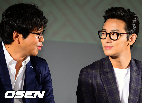 26일 오전 건대 롯데시네마에서 열린 영화 '나는 왕이로소이다'(장규성 감독) 제작보고회에서 주지훈과 장규성 감독이 바라보고 있다.