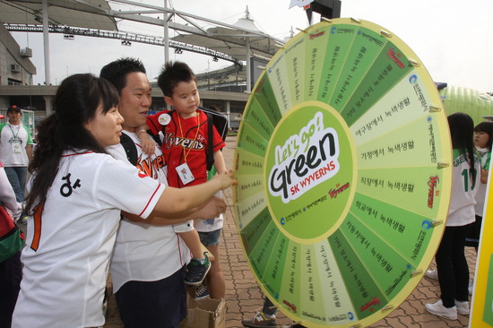 먼저 29일부터 3일간 장외 이벤트가 1루 매표소 앞 광장에서 펼쳐진다. 가족들이 재생 종이를 활용해 썬캡과 피켓을 만드는 녹색 나누리 마당이 진행되며 OX 퀴즈, 줄넘기 등 그린봉사대와 대결을 펼치는 '그린봉사대를 이겨라' 이벤트도 함께 실시된다.