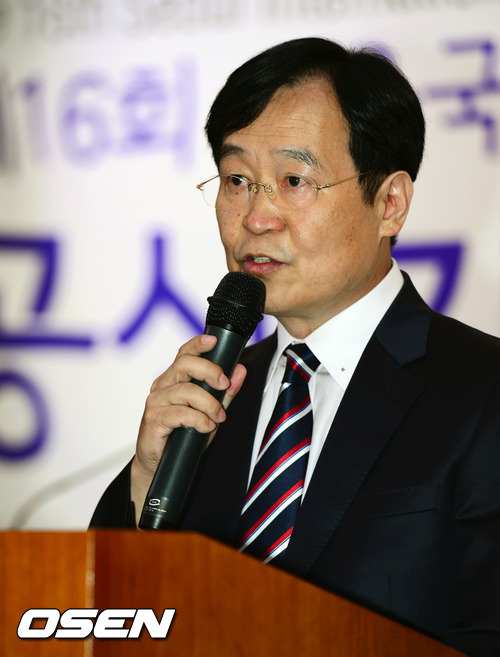 28일 오전 충무로 세종호텔 3층 세종홀에서 열린 '제 16회 서울국제만화애니메이션페스티벌 개최기자간담회 및 배우 윤승아 홍보대사 위촉식'에서 황경태 조직위원장이 축하 인사말을 전하고 있다.