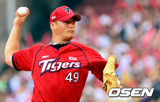28일 오후 서울 잠실구장에서 열린 '2012 팔도 프로야구' LG 트윈스와 KIA 타이거즈의 경기, 2회말 KIA 김진우가 역투하고 있다.
