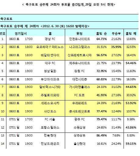 축구토토 승무패 24회차 투표율 중간집계 결과