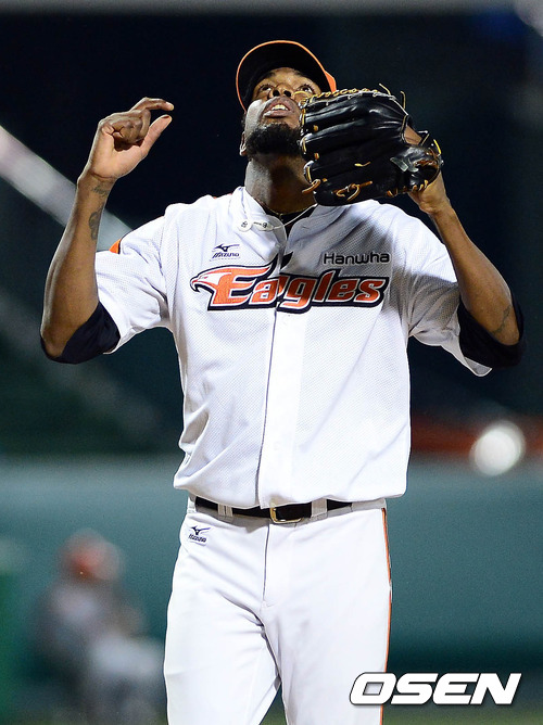 29일 오후 대전구장에서 열린 '2012 팔도 프로야구' 한화 이글스와 KIA 타이거즈의 경기 7회초를 마친 바티스타가 덕아웃으로 향하며 하늘을 바라보고 있다.