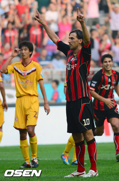 1일 오후 서울월드컵경긱장에서 열린 '2012 K-리그' 19라운드 FC 서울과 광주 FC 경기 후반,서울 데얀이 골을 넣고 세레머니를 하고 있다.
