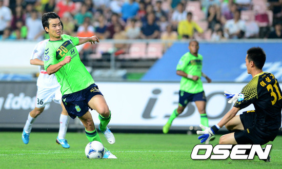 1일 오후 전주월드컵경기장에서 열린 '현대오일뱅크 K리그 2012' 전북 현대와 상주 상무의 경기 후반 이동국이 문전 돌파를 시도하고 있다.