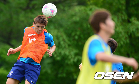 이날 오후 구자철이 헤딩 훈련을 하고 있다.