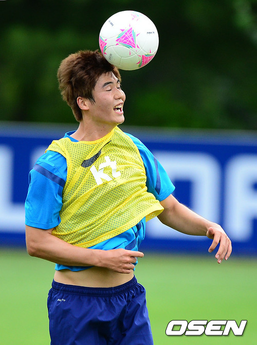 이날 오후 기성용이 헤딩 훈련을 하고 있다.