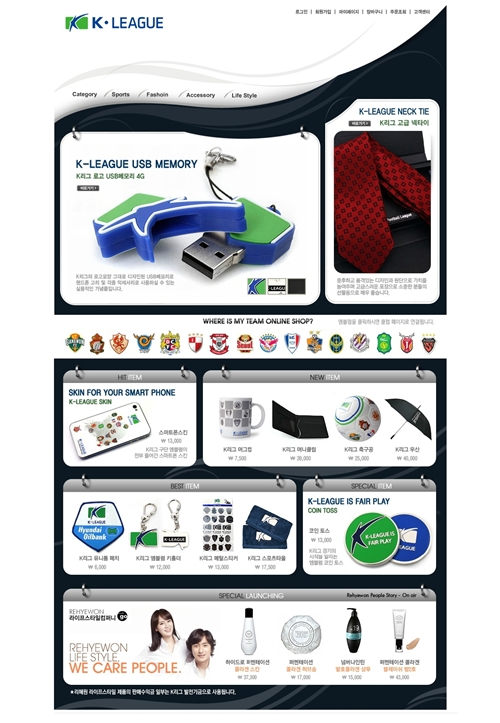 이번에 새롭게 문을 연 K리그 온라인 공식 쇼핑몰에는 'K리그 로고'를 디자인 요소로 활용한 머니클립, 넥타이, 양말, 키홀더 등 의류 잡화 용품과 스마트폰 스킨, USB 저장장치, 고급 타월세트, 우산, 머그컵 등이 준비되어 있다.