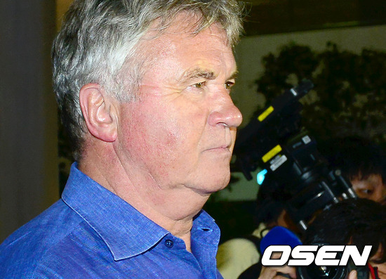 2002년 한일월드컵에서 한국의 '4강 신화'를 이끈 거스 히딩크 감독이 오전 인천국제공항을 통해 입국. 취재진과 인터뷰를 하고 있다.