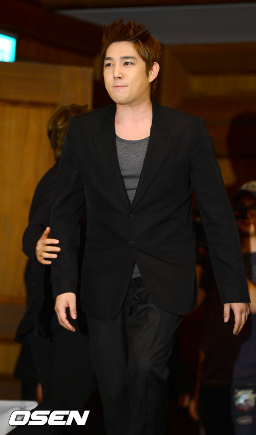 3일 오전 서울 논현동 임피리얼 팰리스 호텔에서 슈퍼주니어 6집 '섹시, 프리&싱글(Sexy, Free & Single)' 출시 기자회견에서 슈퍼주니어 강인이 입장하고 있다.