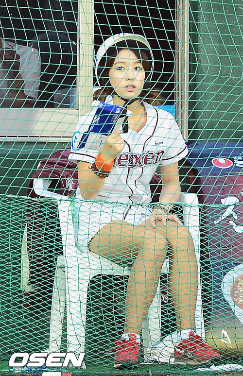 3일 오후 목동구장에서 열린 '2012 팔도 프로야구' 넥센 히어로즈와 한화 이글스의 경기에서 넥센 배트걸 민수진이 부채질을 하고 있다.