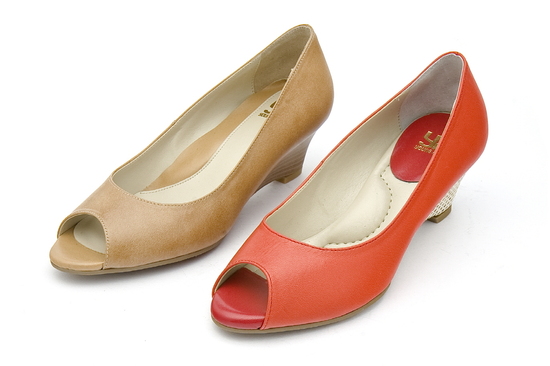 영에이지는 펌프스와 웨지힐을 접목시킨 제품들을 선보이고 있다. 굽은 내추럴한 느낌이 강한 나무소재와 에스파드류를 사용하여 웨지힐 특유의 내추럴한 분위기를 강조했다. 카멜과 비비드 오렌지 컬러를 반영하여 컬러에 포인트를 줬다.