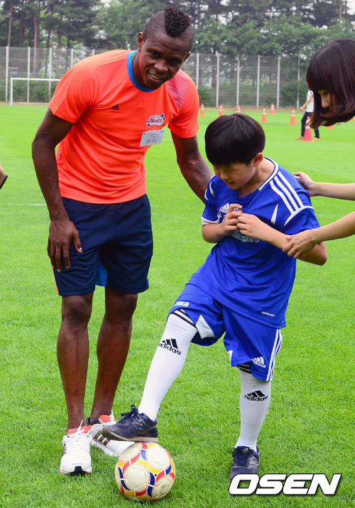 'Seeing is Believing’ 캠페인의 일환으로, 4일 서울 월드컵경기장 내 보조경기장에서 열린 2012 K리그 올스타와 함께‘Seeing is Believing 유소년 축구 클리닉’에 참가한 서울 아디가 시각장애어린이와 공놀이를 하고 있다.