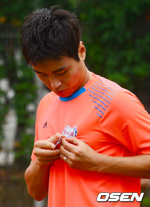 'Seeing is Believing’ 캠페인의 일환으로, 4일 서울 월드컵경기장 내 보조경기장에서 열린 2012 K리그 올스타와 함께‘Seeing is Believing 유소년 축구 클리닉’에 참가한 전북 이동국이 이름표를 달고 있다.