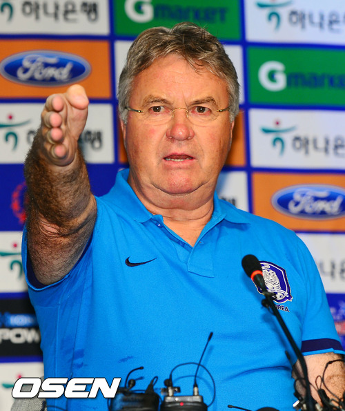 4일 오후 서울월드컵 경기장에서 열린 '2002 월드컵 대표팀 초청 하나은행 K리그 올스타전 2012’ 기자회견에서 히딩크 감독이 질문을 받고 있다.