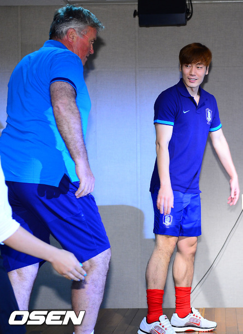 4일 오후 서울월드컵 경기장에서 열린 '2002 월드컵 대표팀 초청 하나은행 K리그 올스타전 2012’ 기자회견에서 송종국이 히딩크 감독을 안내하고 있다.