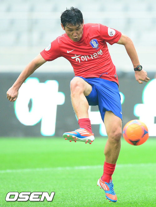 4일 오후 서울월드컵 경기장에서 열린 '2002 월드컵 대표팀 초청 하나은행 K리그 올스타전 2012’ 훈련 중 'TEAM 2002' 최용수가 슛을 날리고 있다.