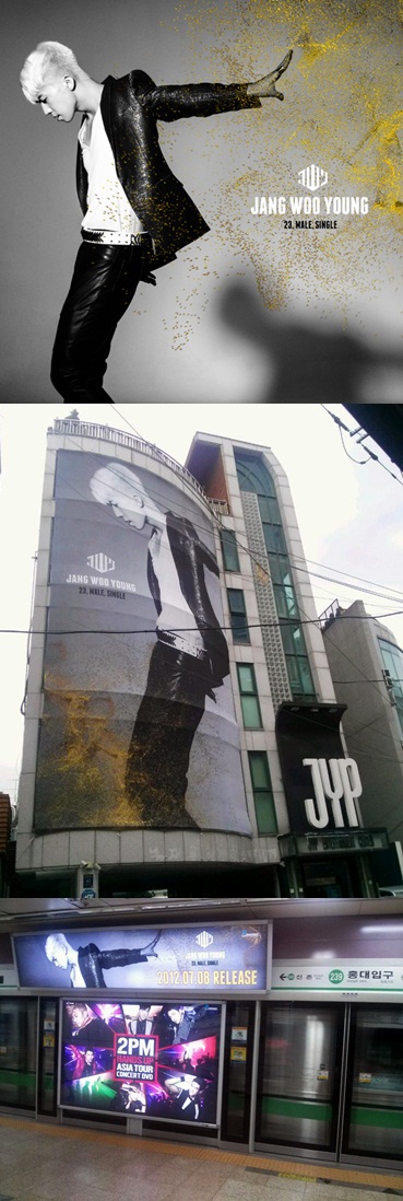 JYP엔터테인먼트는 4일 오전까지 JYP본사를 비롯해 서울 시내 버스 정류장, 홍대 지하철 역 등 서울 시내를 장우영의 솔로 재킷 사진으로 랩핑했다.