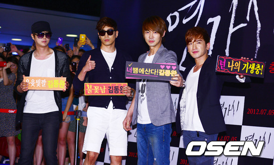 4일 오후 왕십리CGV에서 열린 영화 '연가시'(박정우 감독) VIP시사회에서 신혜성 에릭 전진 이민우가 포토타임을 갖고 있다.