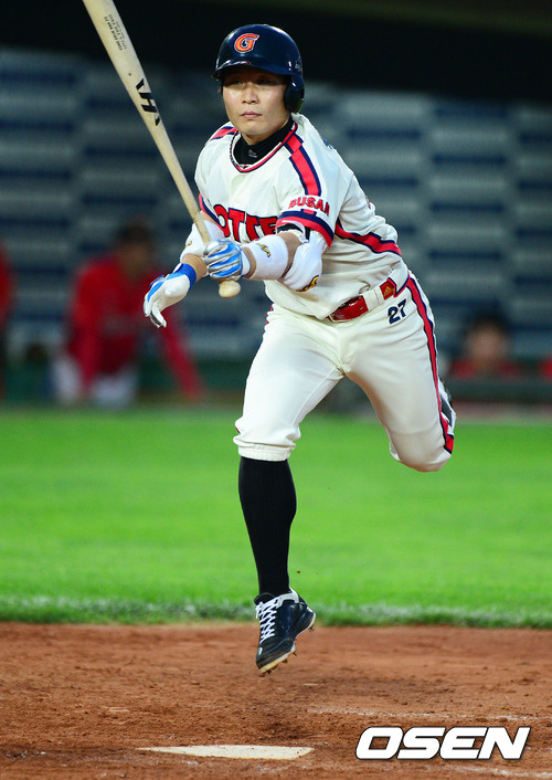4일 오후 부산 사직구장에서 열린 2012 팔도 프로야구 롯데 자이언츠와 SK 와이번스의 경기, 4회말 1사 2,3루에서 롯데 용덕한이 번트를 시도하고 있다.