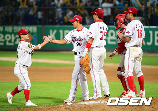경기 종료 후 KIA 선수들이 승리의 기쁨을 나누고 있다. / sunday@osen.co.kr