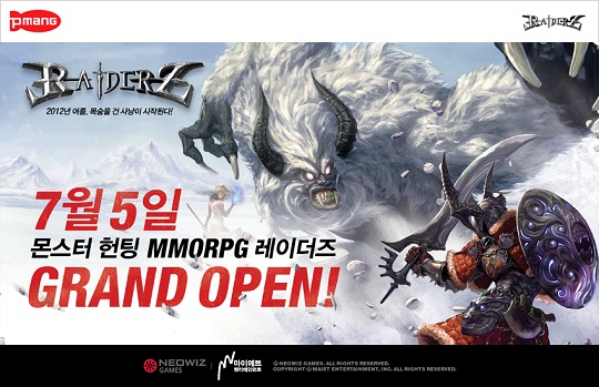 네오위즈게임즈는 게임포털 피망이 서비스하고, 마이에트 엔터테인먼트가 개발한 액션 MMORPG ‘레이더즈’를 5일 오후 4시부터 공개서비스(OBT)를 시작한다고 밝혔다.