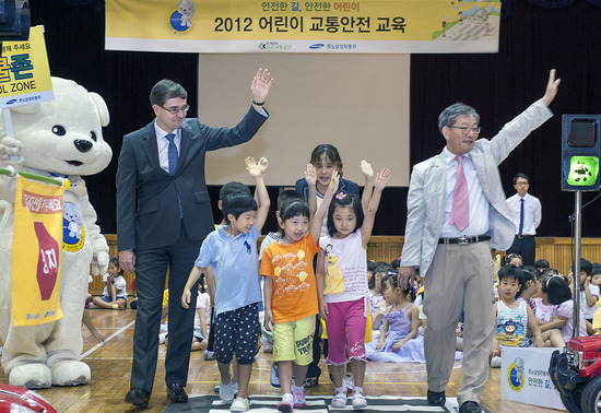 프랑수아 프로보 사장이 일일 교사로 참여해 어린이 교통안전 실습수업을 진행했으며, ‘안전한 길, 안전한 어린이’ 캠페인 일환으로 ‘스쿨 존 30km 속도 지키기’ 길거리 서명운동도 가졌다. 프랑수아 프로보 사장은 아직 어려서 교통안전에 대한 중요성을 잘 모르는 1,2학년생 저학년들을 대상으로 ‘안전하게 길 걷기, 안전하게 놀이하기, 안전하게 횡단하기’라는 내용을 강조했다.