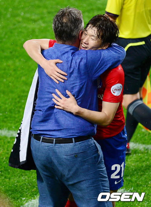 포옹하는 박지성-히딩크,'10년전을 생각하며!'